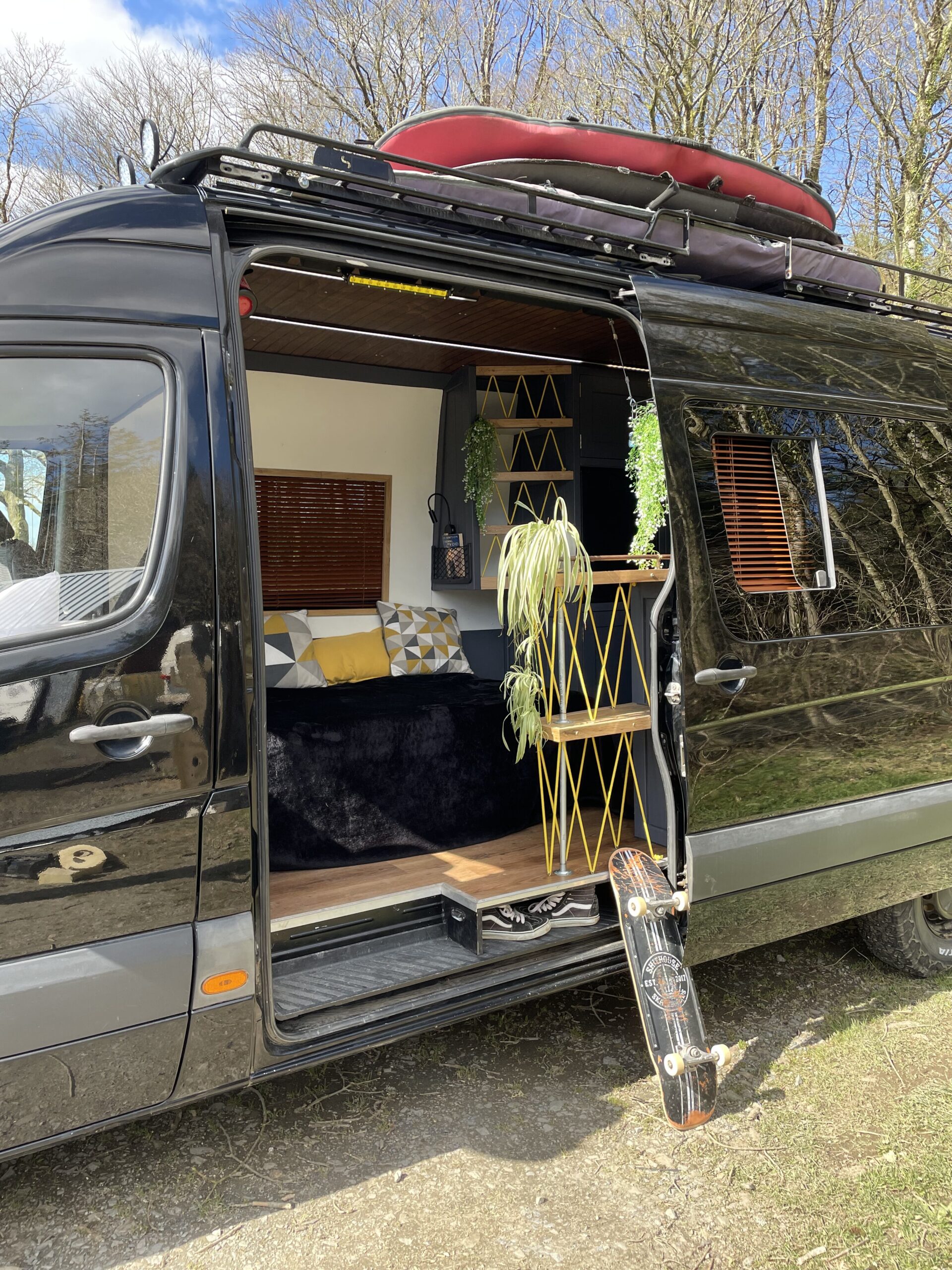 4 berth, black LWB Mercedes Benz sprinter, off grid, adventure van for sale