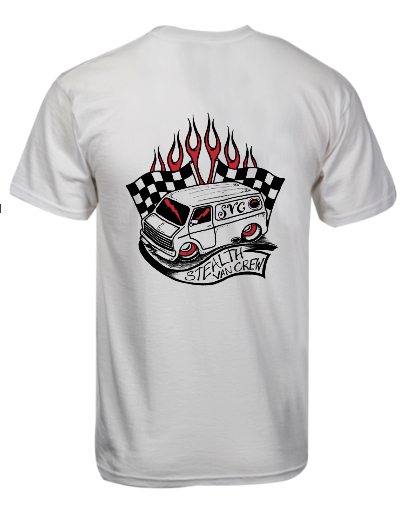 Yellow Vanlife t shirt by S.V.C, Stealth Van Crew with Van logo on back and S.V.C logo on front